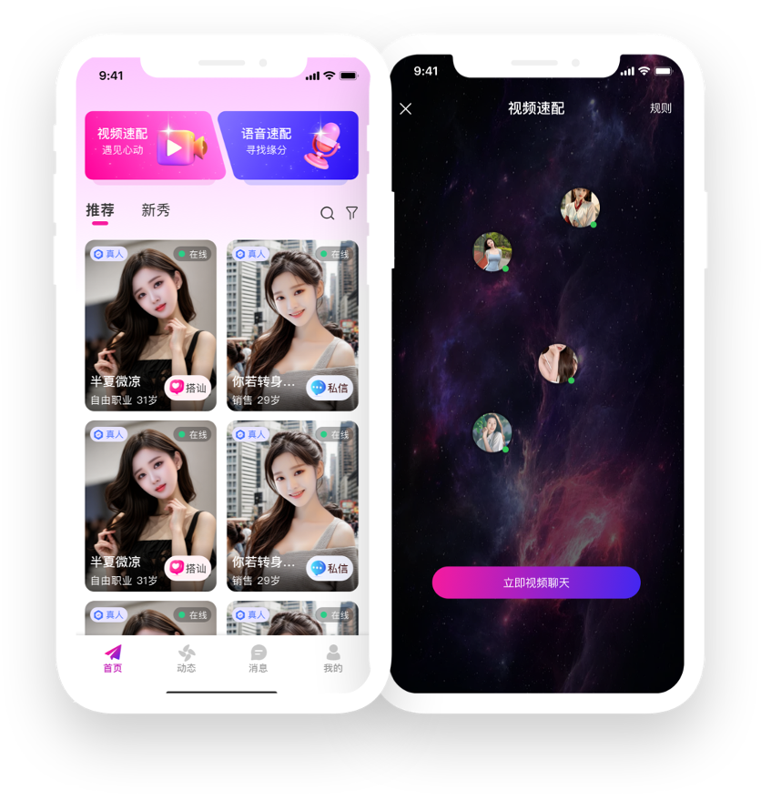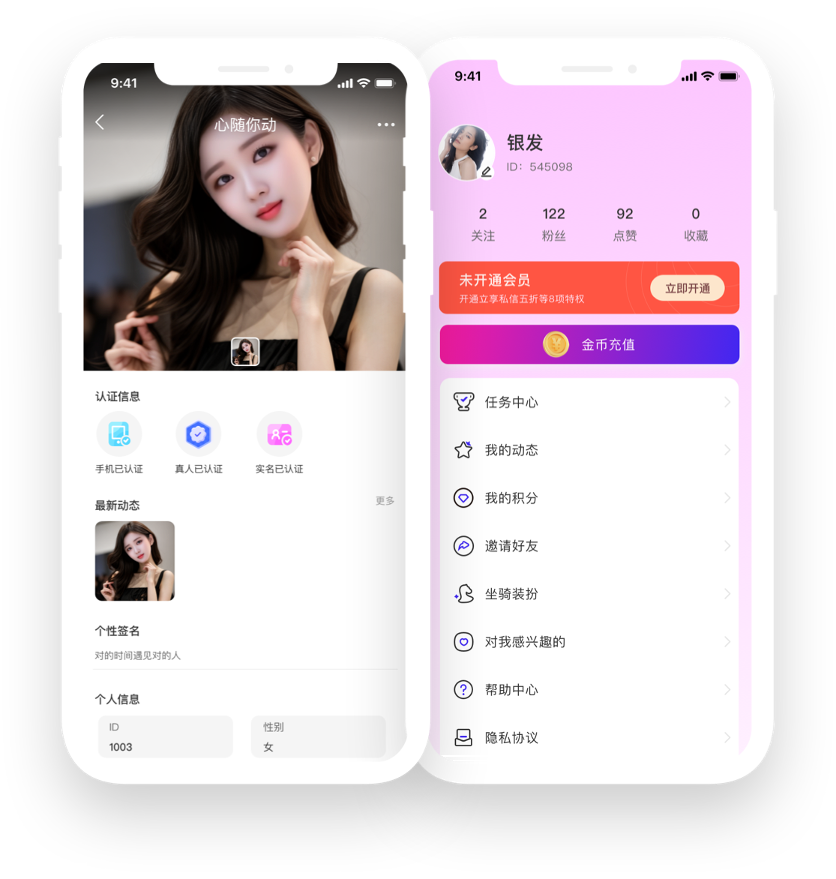 【真人认证】智能AI快速审核用户资料,实名认证双重加码,保障真人聊天。