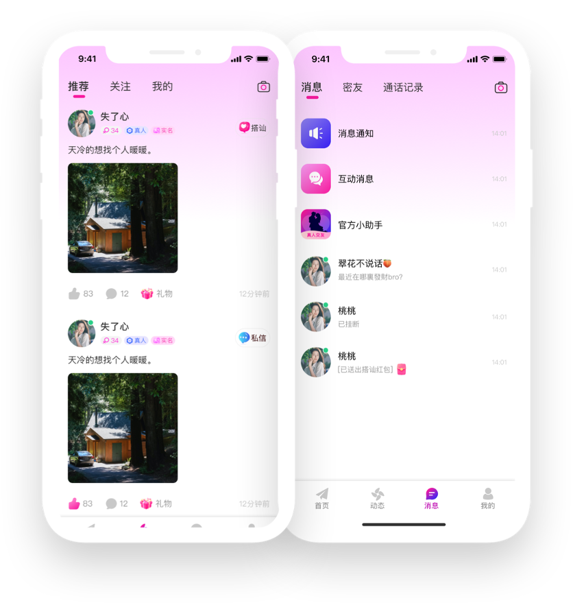 【异性推荐】基于定位优先推荐本地或活跃度高的异性,让你的搭讪时时有回馈。