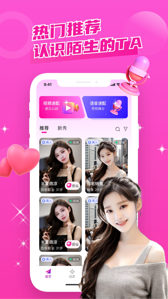 【缘分速配】一键点击,快速匹配,智能匹配缘分异性,语音视频轻松配,24小时随时随地交友聊天。